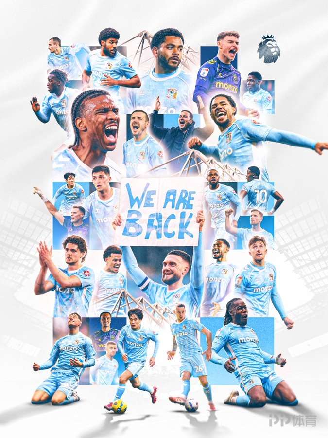 在提前三轮确定重返英超联赛后,考文垂官方晒海报庆祝这一纪念时刻。